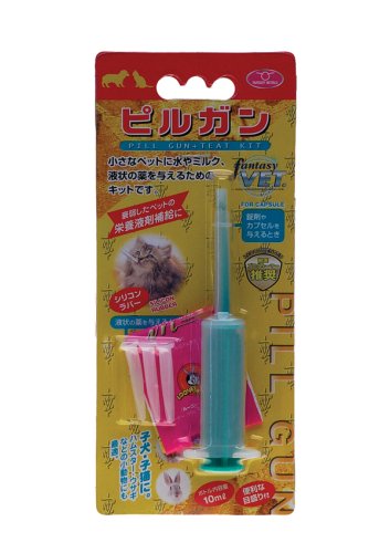 【使用方法】このセットで錠剤やカプセル、液状の薬を与えられます。衰弱したペットに水やミルクを与えるときにも使用できます。錠剤は、注射器先端部ではさみ与えてください。液体は、注射器でまず液体を吸ってから乳首を根本まで差し込み与えてください。先に乳首をセットすると液体を吸い込みにくくなります。