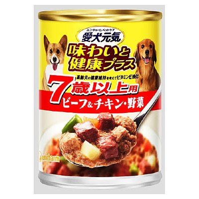 愛犬元気 味わいと健康プラス缶7歳以上用ビ−フ&チキン・野菜 375g